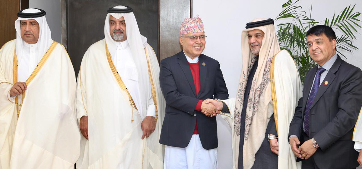 कतार चेम्बर अफ कमर्स एन्ड इन्डस्ट्रिजका बोर्ड सदस्य मोहद अहमद एमए अलोबैदेलीको नेतृत्वमा आएको कतारी प्रतिनिधिमण्डले आज अर्थमन्त्री रामेश्वरप्रसाद खनाल र परराष्ट्रमन्त्री बालानन्द शर्मासँग भेटवार्ता गरेको छ।