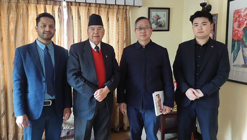 काठमाडौं – नेपाली कम्युनिष्ट पार्टीका नेता एवं पूर्वप्रधानमन्त्री झलनाथ खनाल र नेपालका लागि चिनियाँ राजदूत छन सोङबीच आज बिदाइ भेटवार्ता भएको छ । चिनियाँ दूतावासमा भएको शिष्टाचार भेटवार्तामा उहाँहरूबीच आपसी हित एवं चासोको विषयमा कुराकानी भएको हो । पूर्वप्रधानमन्त्री खनालले कार्यकाल सफलतापूर्वक सम्पन्न गरेकामा राजदूत सोङलाई बधाई दिँदै दुई मुलुकबीच सहयोग तथा सम्बन्ध विस्तार गर्न […]