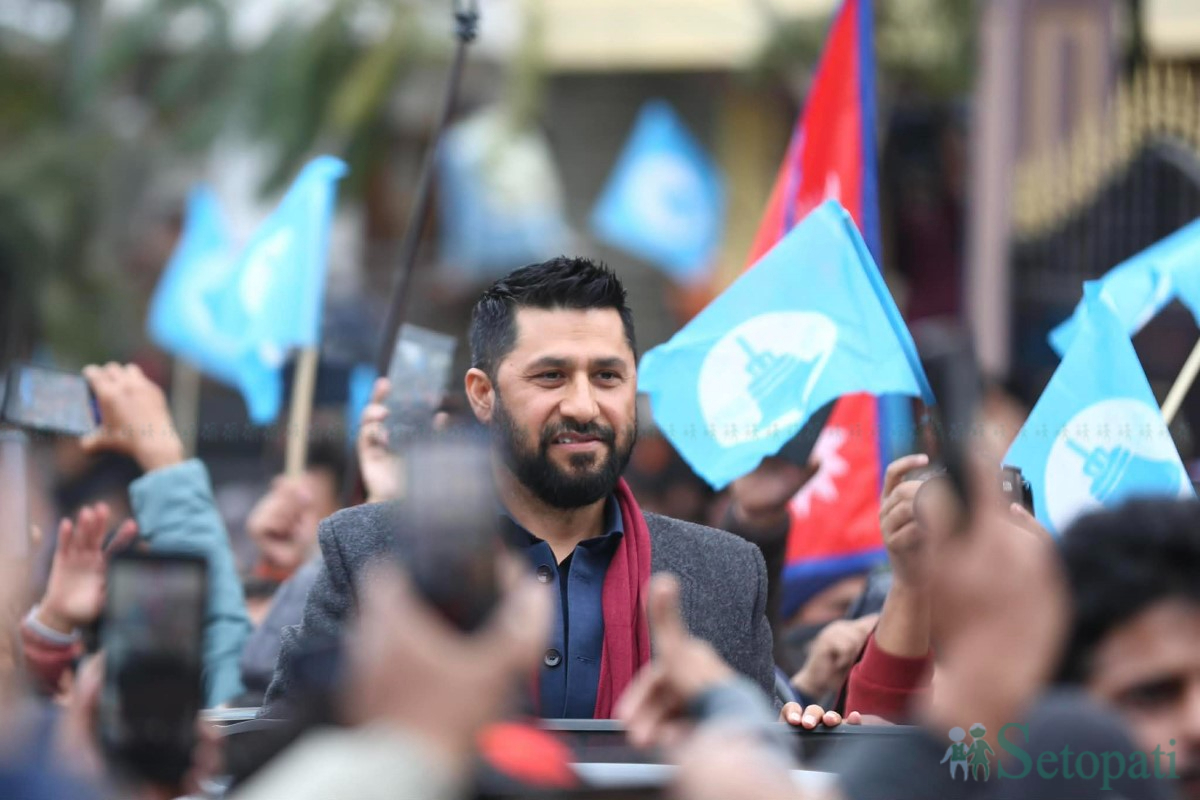 काठमाडौं– राष्ट्रिय स्वतन्त्र पार्टी रास्वपाका सभापति रवि लामिछानेलाई पार्टी केन्द्रीय कार्यालयमा स्वागत गरिएको छ । काठमाडौंको वनस्थलीस्थित पार्टी कार्यालयमा कार्यकर्ता एवं शुभेच्छुकहरूले उनलाई स्वागत गरेका हुन् उनलाई बाजागाजासहित अहिले पार्टी कार्यालयमा स्वागत गरिएको छ । भैरहवा कारागारबाट छुटेर लामिछाने हिजो मात्रै काठमाडौं आइपुगेका थिए । उनले घण्टी बजाएर सम्बोधन गरेका छन् । तस्बिरहरु: नेपाल फोटो लाइब्रेरी