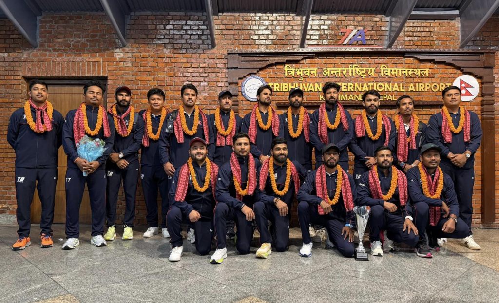 २१ कात्तिक, काठमाडौं । नेपाली क्रिकेट टोली स्वदेश फर्किएको छ । विभिन्न तीन प्रतियोगिता खेलेर नेपाली टोली बिहीबार मध्यराति नेपाल आइपुगेको हो ।