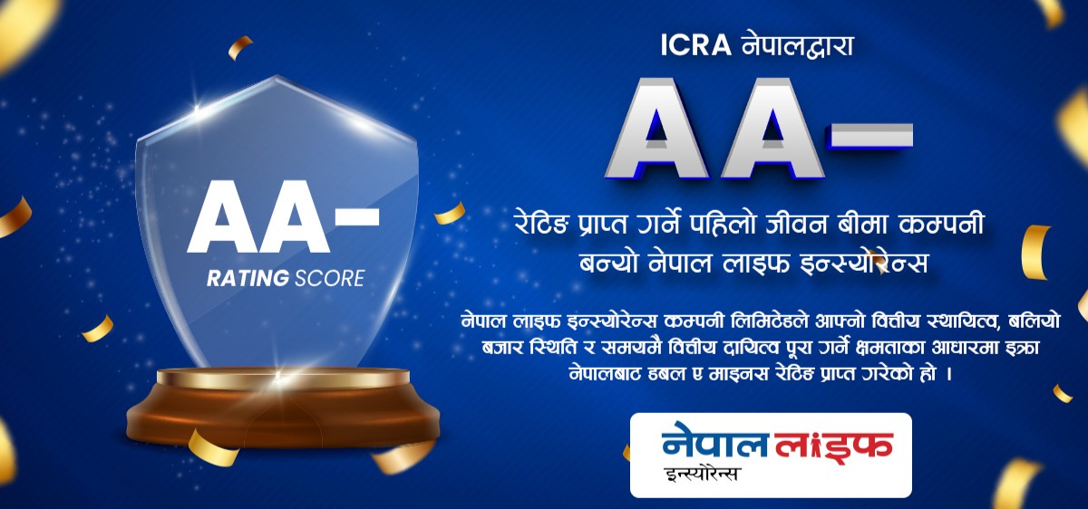 नेपाल लाइफ इन्स्योरेन्स कम्पनी लिमिटेडले आफ्नो वित्तीय स्थायित्व, बलियो बजार स्थिति र समयमै वित्तीय दायित्व पूरा गर्ने क्षमताका आधारमा इक्रा नेपालबाट डबल ए माइनस क्रेडिट रेटिङ प्राप्त गरेको हो।