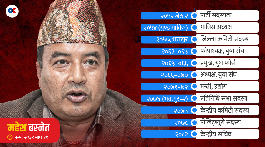 ३ पुस, काठमाडौं । महेश बस्नेत को हुन् र एमालेभित्र जुनसुकै हैसियतमा बसेका भए पनि अध्यक्ष केपी शर्मा ओलीका लागि उनको उपस्थितिले कस्तो अर्थ राख्छ भनेर बुझ्न १२ वर्षअघिको एउटा दृश्यमा जाऔं ।