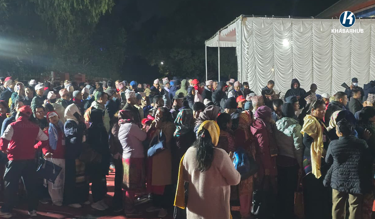 काठमाडौं– नेकपा एमालेको एघारौं महाधिवेशनमा प्रतिनिधिहरूलाई हलभित्र प पस्न आग्रह गरिएको छ। स्वयंसेवकहरूलाई महाधिवेशन प्रतिनिधिहरूलाई हलभित्र पस्न सहजीकरण गर्न आग्रह गरिएको छ। नेकपा एमालेको एघारौं महाधिवेशनमा विद्युतीय भोटिङ मेसिनबाट मतदान हुँदैछ। अब मतदानको प्रक्रिया सुरु हुन लागेकाले हलभित्र पस्न आग्रह गरिएको हो।
