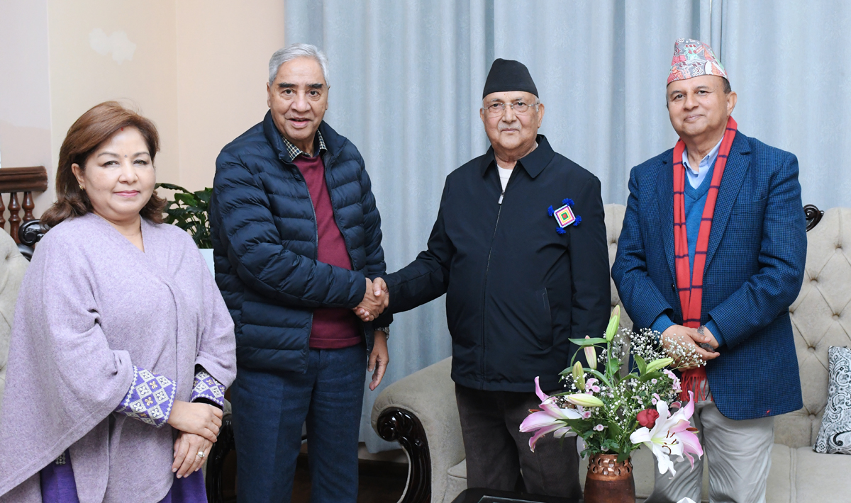 काठमाडौं- सिंहदरबारमा प्रधानमन्त्री सुशीला कार्कीले आयोजना गरेको सर्वपक्षीय छलफल चलिरहँदा नेकपा एमालेका अध्यक्ष केपी शर्मा ओली नेपाली कांग्रेसका सभापति शेरबहादुर देउवालाई भेट्न महाराजगञ्ज पुगेका छन् । एघारौँ महाधिवेशनबाट निर्वाचित सचिव महेश बस्नेतलाई सिंहदरबारको बैठकमा पठाएर राजनीतिक सन्देश दिएका ओलीले महाराजगञ्ज जाँदा पनि महासचिव शंकर पोखरेल साथमा देखिए । कांग्रेस र एमालेका बहुमत अर्थात् १३९ जना […]