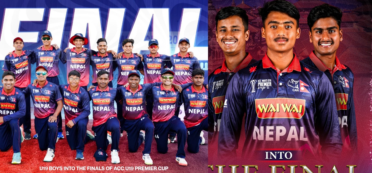 काठमाडौं (हाम्रो खेलकुद)- नेपाल युएईमा जारी एसिसी पुरुष यू-१९ प्रिमियर कपको फाइनलमा प्रवेश गर्न सफल भएको छ। उत्कृष्ट बलिङ गरेको नेपालले सेमिफाइनलमा नेपाले मलेिसयालाई ९ बिकेटले माथ दियो। जितको लागि ५२ रनको अत्यन्त सहज चुनौती नेपालले ७ ओभर ५ बलमा १ विकेट गुमाएर पूरा गर्यो। ओपनर निरज कुमार यादव ४ रनमा मुहम्मद अक्रमको बलमा आउट