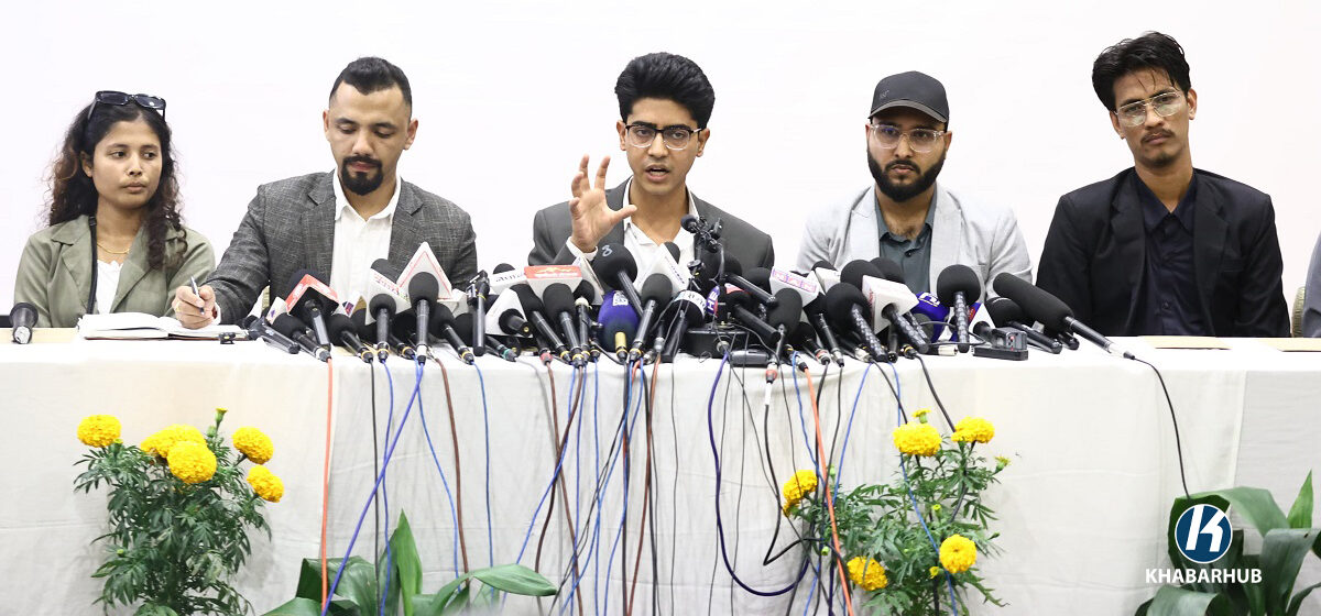काठमाडौं– जेन–जी आन्दोलनपछि एकाएक चर्चामा आएका मिराज ढुंगानाले नयाँ बानेश्वरस्थित एभरेस्ट होटेलमा पार्टी घोषणाका लागि पत्रकार सम्मेलन गरेका छन् । सम्मेलनमा मिराज र उनका समूहका केही सदस्यहरूको उपस्थिति रहेको छ ।