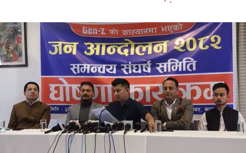 काठमाडौं– जेन-जीको आह्वानमा भएको जनआन्दोलन २०८२ को समन्वय संघर्ष समितिले सर्वपक्षीय अन्तरिम सरकारको अवधारणा सार्वजनिक गरेको छ । संघर्ष समितिले मंगलबार काठमाडौंमा पत्रकार सम्मेलन गर्दै अहिलेको अवस्थामा मुलुकलाई निकास दिनका लागि सर्वपक्षीय अन्तरिम सरकारसहितको अवधारणा सार्वजनिक गरेको हो । सर्वपक्षीय अन्तरिम सरकार गठनका लागि सबै राजनीतिक दल, नागरिक समाज र जेन–जी आन्दोलनका प्रतिनिधिहरू सम्मिलित उच्चस्तरीय […]
