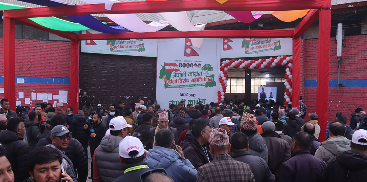 काठमाडौँ। नेपाली कांग्रेसको दोस्रो विशेष महाधिवेशनको बन्दसत्र काठमाडौँको भृकुटीमण्डपमा जारी छ। सोमबार विशेष महाधिवेशन आह्वानकर्ता महामन्त्रीद्वय गगनकुमार थापा र विश्वप्रकाश शर्माले आआफ्ना प्रतिवेदन पेस गरे। प्रतिवेदनमा समूहगत छलफल चलिरहेको छ। सोमबार छलफल नसकिएकाले मंगलबारसम्म अधिवेशन लम्ब्याइएको छ। त्यसपछि नेतृत्व चयनको प्रक्रियामा अघि बढ्ने प्रचारप्रसार उपसमितिका सदस्य सचिव माधवप्रसाद चम्लगाईंले बताउँछन्। बन्दसत्रले विशेष महाधिवेशनको कार्यविधि पारित […]