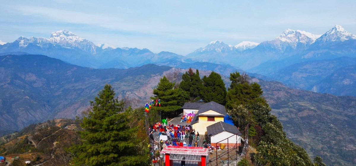७ पुस, म्याग्दी । पृष्ठभूमिमा लहरै हिमाल । वरपर घना जङगल । शान्त र एकान्त वातावरण । पहाडको मध्यभागमा अवस्थित थुम्को । तलतिर देखिने नागबेली परेर बगेको म्याग्दी नदी र ग्रामीण बस्ती चराचुरुङ्गी र वन्यजन्तुका …