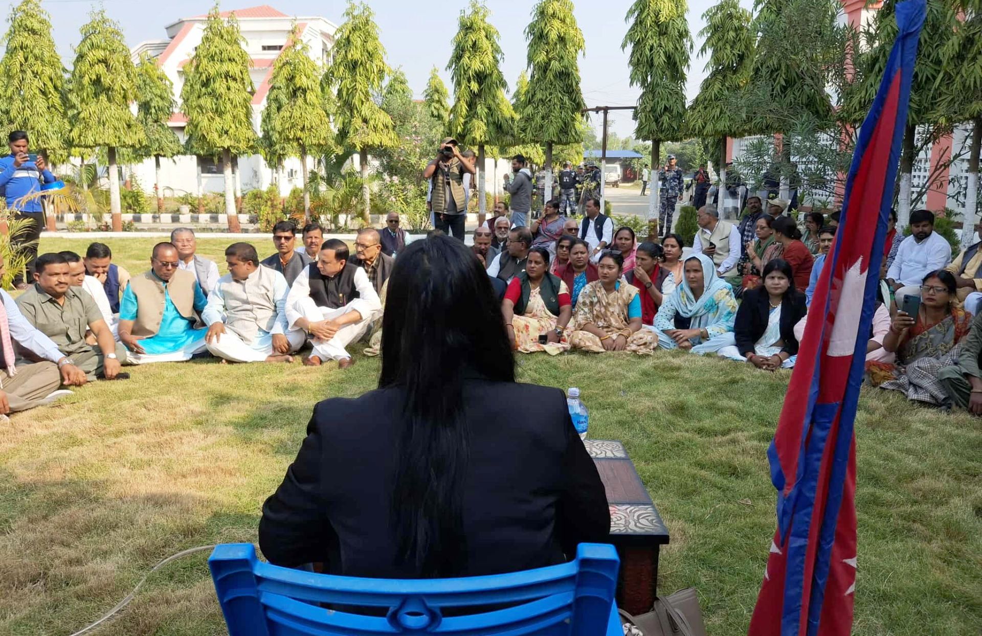 २९ कात्तिक, जनकपुरधाम । उपसभामुख बबिता कुमारी राउत ईशरले प्रांगणमै प्रदेशसभा सञ्चालन गरेकी छन् ।