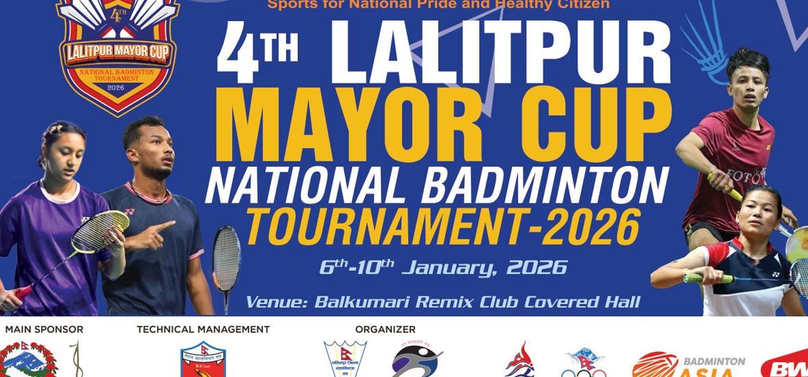 ललितपुर ब्याडमिन्टन संघ र बालकुमारी रिमिक्स क्लबको संयुक्त आयोजनामा चौथो ललितपुर मेयर कप राष्ट्रिय ब्याडमिन्टन प्रतियोगिता २०८२ पौष २२ गते बाट हुने भएको छ ।