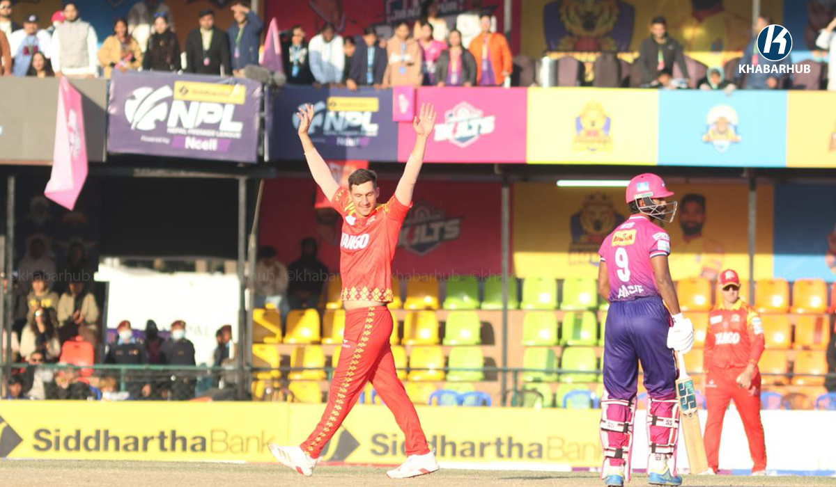 काठमाडौं- नेपाल प्रिमियर लिग एनपीएलको दोस्रो सिजनको पच्चिसौँ खेलमा अहिले जनकपुर बोल्ट्स र लुम्बिनी लायन्सबीच प्रतिस्पर्धा भइरहेको छ । कीर्तिपुरस्थित त्रिवि अन्तर्राष्ट्रिय क्रिकेट रङ्गशालामा जारी खेलमा जनकपुरले टस जितेर पहिले ब्याटिङ गरिरहेको छ । खेलमा जनकपुरले पहिलो विकेट गुमाएको छ । पहिलो विकेटका रुपमा जनकपुरका माज शदाकत आउट भए । खेलको पहिलो ओभरको पाचौँ बलमा […]