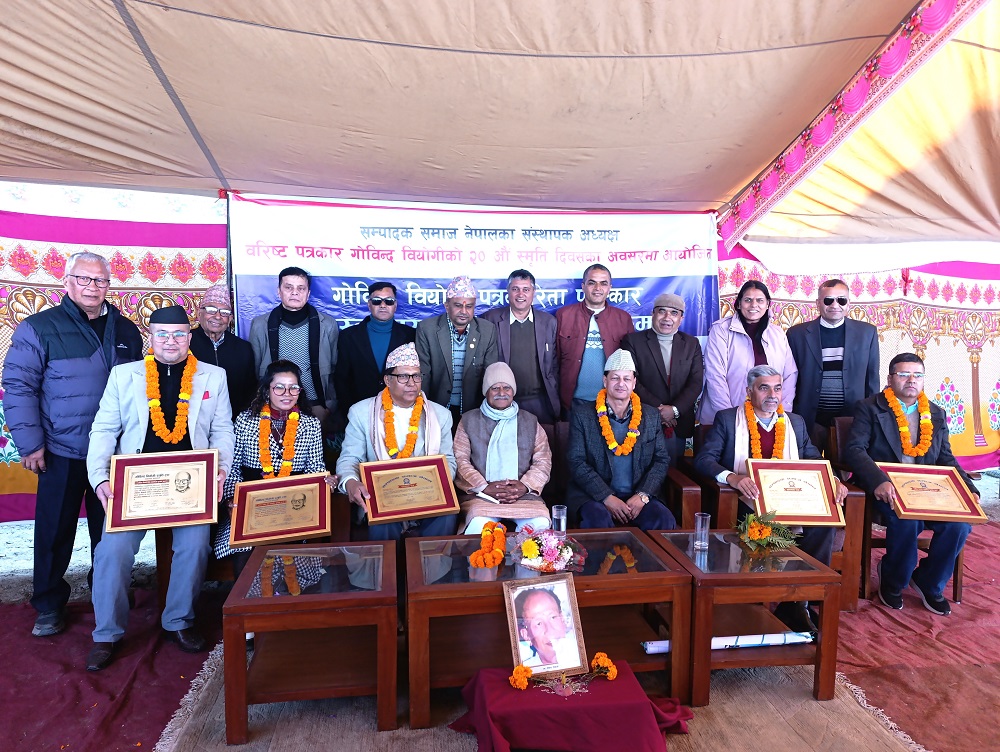 RajdhaniDaily.com | काठमाडौं । सम्पादक समाज नेपालले आफ्ना संस्थापक अध्यक्ष एवं वरिष्ठ पत्रकार गोविन्द वियोगीको स्मरणमा स्थापित ‘गोविन्द वियोगी पत्रकारिता पुरस्कार–२०८२’ र -
