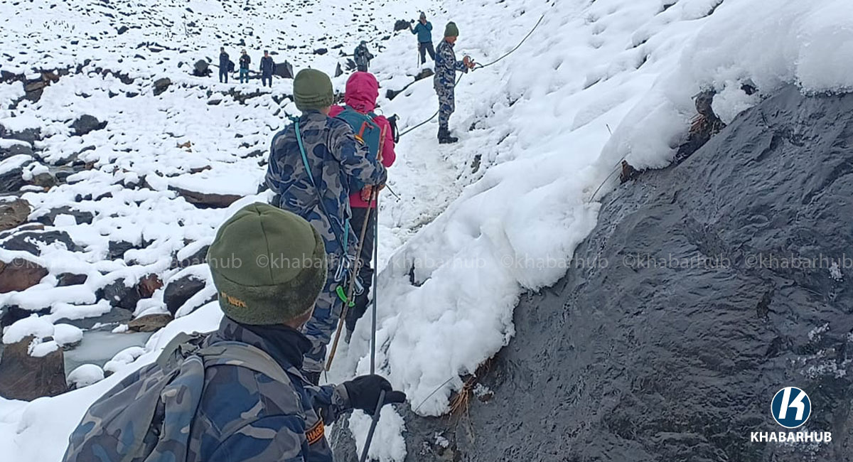 काठमाडौं– मनाङको तिलिचो बेश क्याम्पमा अलपत्र परेका पर्यटकको उद्धारका लागि सशस्त्र प्रहरी बल परिचालन गरिएको छ । मनाङको ङिस्याङ गाउँपालिका–९ तिलिचो तालको बेश क्याम्पमा अलपत्र परेका १५ पर्यटकको उद्धारका लागि सशस्त्र प्रहरी बलको उद्धार टोली त्यसतर्फ गएको प्रहरी नायव उपरीक्षक शैलेन्द्र थापाले जानकारी दिए । दुई चिनियाँ र १३ नेपाली गरी १५ पर्यटक हिमपातका कारण तिलिचो […]