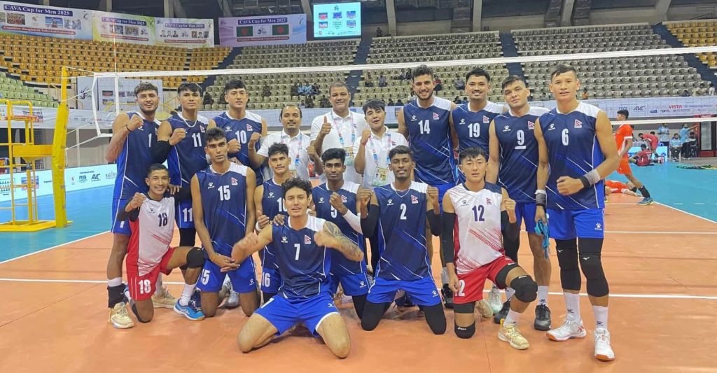११ कात्तिक, काठमाडौं । बंगलादेशको ढाकामा भइरहेको काभा कप पुरुष भलिबलमा माल्दिभ्सलाई हराउँदै नेपाल पाँचौ भएको छ ।