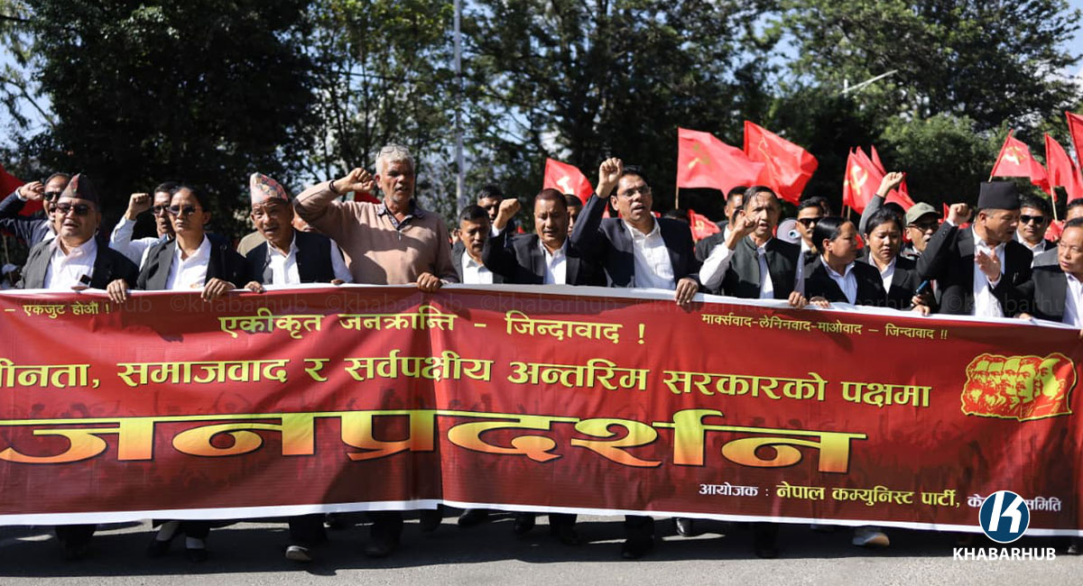 काठमाडौं– नेत्रविक्रम चन्द नेतृत्वको कम्युनिष्ट पार्टी नेपालले काठमाडौंमा बिहीबार प्रदर्शन गरेको छ । सर्वपक्षीय अन्तरिम सरकारको माग गर्दै नेकपाले र्यालीसहित शान्ति बाटिकाबाट भृकुटीमण्डपसम्म प्रदर्शन गरेको हो । भृकुटीमण्डप पुगेर प्रदर्शन सभामा परिणत भएको छ । सभालाई महासचिव नेत्रविक्रम चन्द विप्लवले सम्बोधन गर्नेछन् । गत भदौमा भएको जेन-जी आन्दोलनपछि विकसित राजनीतिक घटनाक्रम लगायतका विषयमा पार्टीको धारणा […]