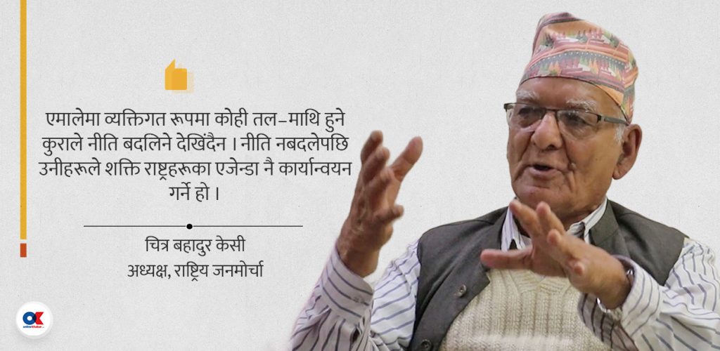 नेकपा एमालेको नीति र नेतृत्वलाई आलोचनात्मक रूपमा हेर्ने एक कम्युनिस्ट नेता हुन्– चित्रबहादुर केसी । राष्ट्रिय जनमोर्चाका अध्यक्ष समेत रहेका केसी जनताको बहुदलीय जनवाद (जबज) लाई सोभियत नेता निकिता ख्रुश्चेभको संशोधनवादी नीतिबाट प्रभावित विचलन भन्छन् …