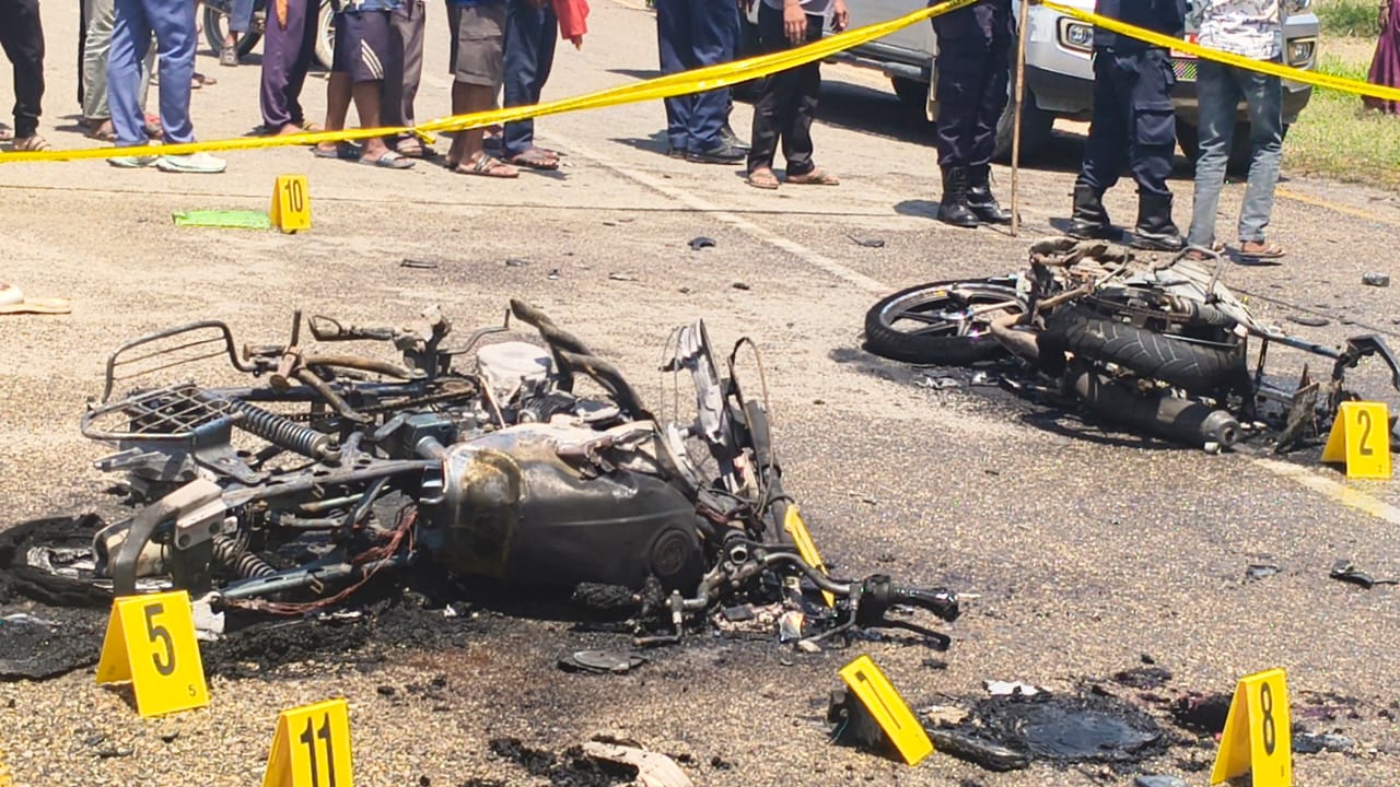जलेश्वर– जलेश्वर बर्दिबास सडकखण्डको बथनाहा गाउँमा आज बिहान दुई वटा मोटरसाइकल एकापसमा ठोक्किएर आगलागी हुँदा तीन विद्यार्थीको जलेर मृत्यु भएको घटनाको थप विवरण सार्वजनिक गरिएको छ । मृत्यु हुनेमा जिल्ला सदरमुकाम जलेश्वर नगरपालिका–६ बस्ने सुरेन्द्र दासका छोरा अन्दाजी २० वर्षीय शुभाष दास, रामदयाल दासका छोरा अन्दाजी २० वर्षीय रवि दास र एकडारा गाउँपालिका–३ बस्ने शत्रुध्न […]