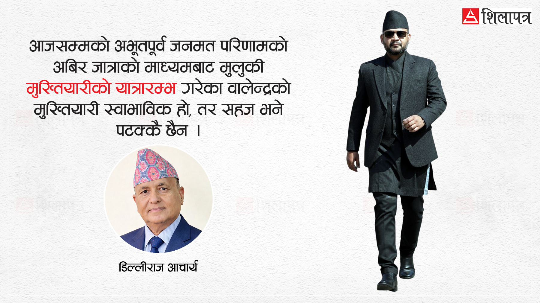 आजसम्मको अभूतपूर्व जनमत परिणामको अबिर जात्राको माध्यमबाट मुलुकी मुख्तियारीको यात्रारम्भ गरेका वालेन्द्रको मुख्तियारी स्वाभाविक हो, तर सहज भने पटक्कै छैन ।