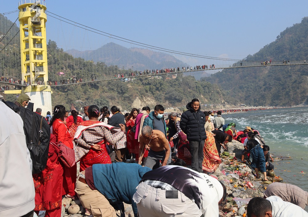 RajdhaniDaily.com | पाल्पा । माघे सक्रान्तिमा पाल्पा, गुल्मी र स्याङ्जाको संगम स्थल रुरु क्षेत्र धाम रिडीमा कालीगण्डकी स्नान र ह्षिकेशव भगवानको दर्शन गर्ने भक्तजनहरुको भिड -
