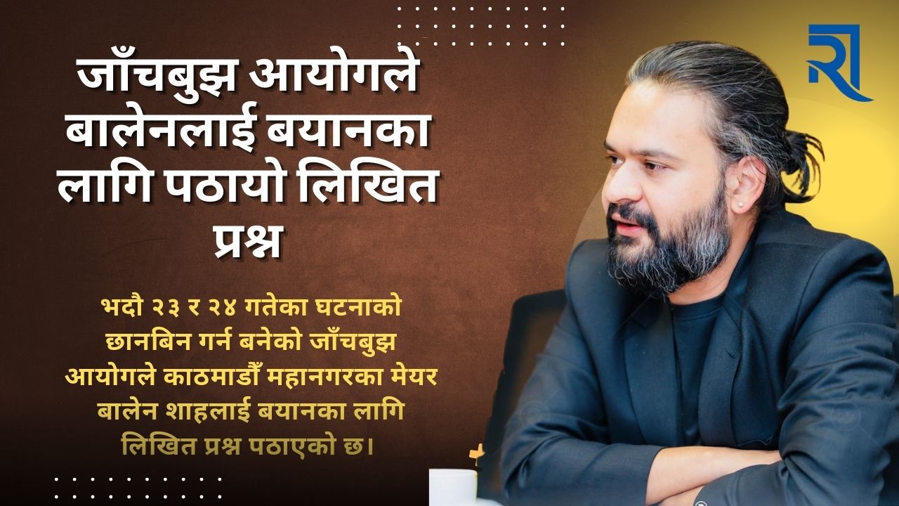 RajdhaniDaily.com | काठमाडौं । भदौ २३ र २४ गतेका घटनाको छानबिन गर्न बनेको जाँचबुझ आयोगले काठमाडौँ महानगरका मेयर बालेन शाहलाई बयानका लागि लिखित प्रश्न पठाएको छ । आयोगका -