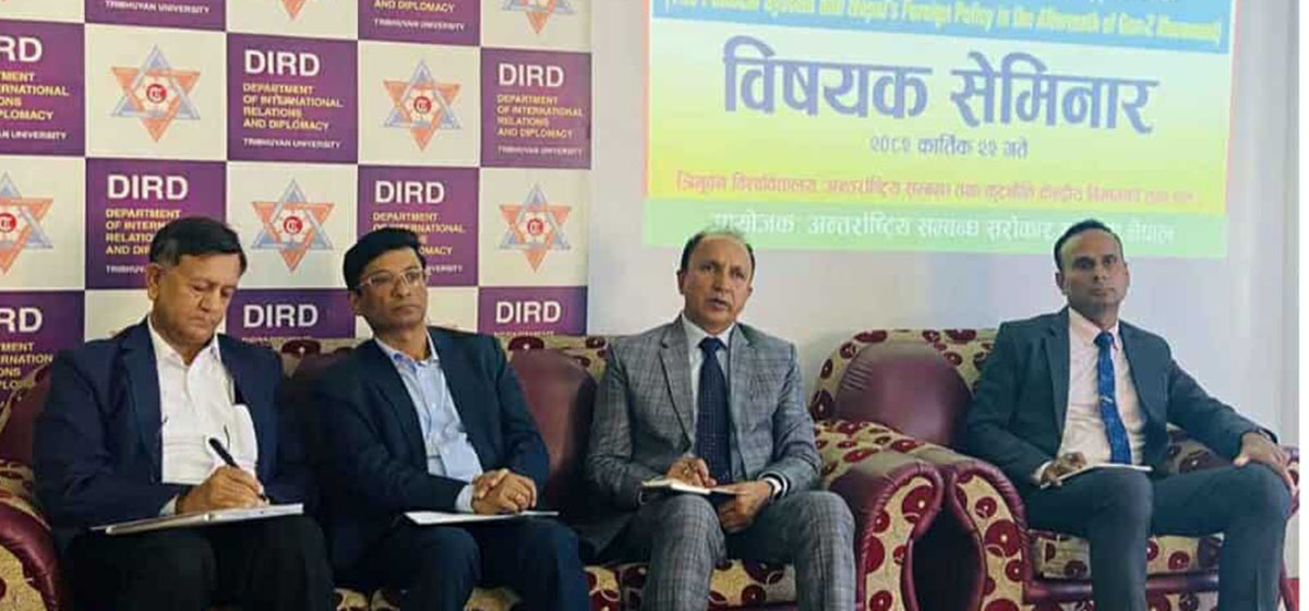 अन्तर्राष्ट्रिय सम्बन्ध सरोकार समुदाय नेपालद्वारा आयोजित कार्यक्रममा प्रमुख वक्ताहरूले नेपालको परराष्ट्र नीति र कूटनीतिक नेतृत्वमा सुधारको आवश्यकताका विषयमा छलफल गरेका छन्।