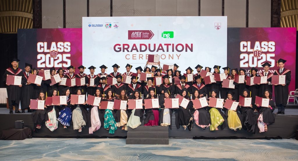 ३ पुस, काठमाडौं । एपेक्स कलेजले आफ्नो वार्षिक दीक्षान्त समारोह ललितपुरस्थित द प्लाजामा भव्यताका साथ सम्पन्न गरेको छ । समारोहमा विभिन्न शैक्षिक कार्यक्रमअन्तर्गत अध्ययन पूरा गरेका विद्यार्थीलाई औपचारिक रूपमा दीक्षित गरिएको छ ।