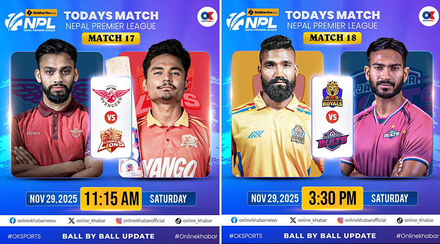 १३ मंसिर, काठमाडौं । सिद्धार्थ बैंक नेपाल प्रिमियर लिग (एनपीएल) २०२५ अन्तर्गत आज सुपर स्याटरडे दुई खेल हुँदैछन् ।