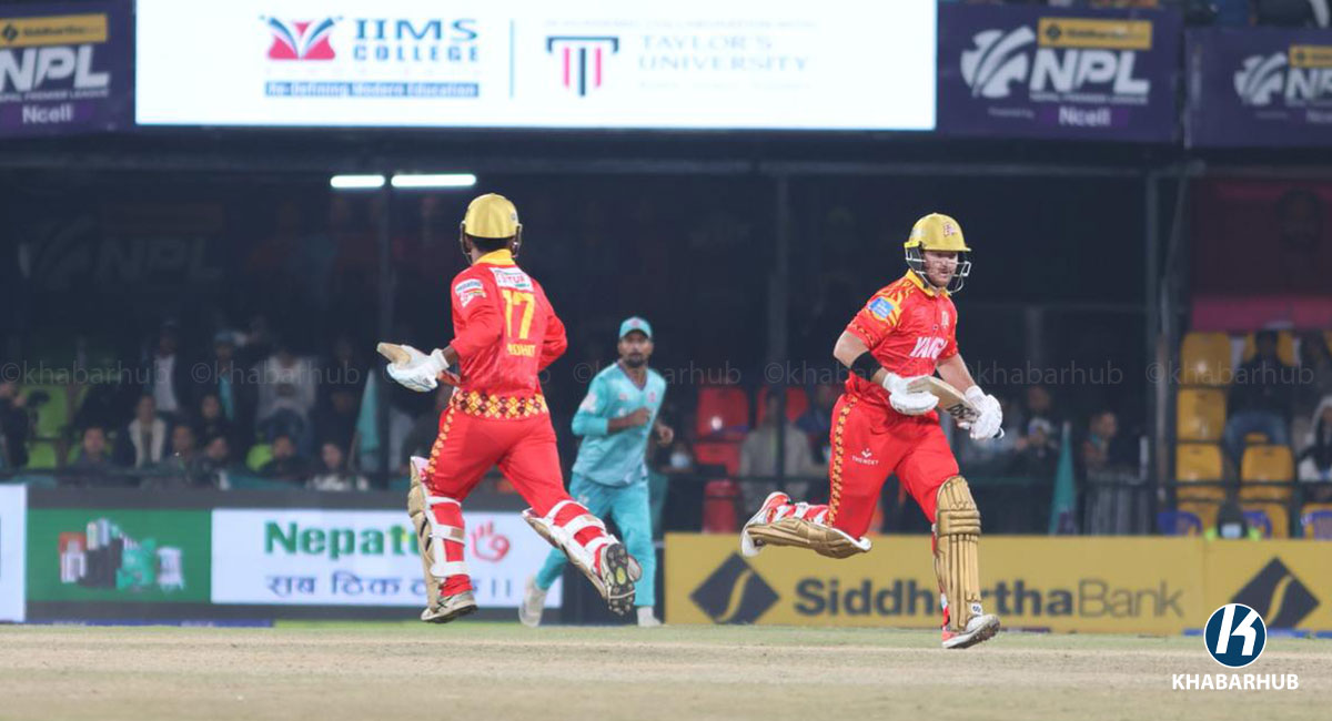 काठमाडौँ। दोस्रो संस्करणको नेपाल प्रिमियर लिग (एनपील)अन्तर्गत आज (मंगलबार) को खेलमा काठमाडौं गोर्खाजले लुम्बिनी लायन्सलाई १५८ रनको लक्ष्य दिएको छ। त्रिवि अन्तर्राष्ट्रिय क्रिकेट रङ्गशाला, कीर्तिपुरमा टस हारेर पहिला ब्याटिङ गरेको काठमाडौँले निर्धारित २० ओभरमा आठ विकेटको क्षतिमा १५७ बनायो। यसमा कप्तान करण केसीले अविजित ३४, आकाश त्रिपाठीले ३२ र सन्तोष यादवले २६ रनको योगदान गरे। […]