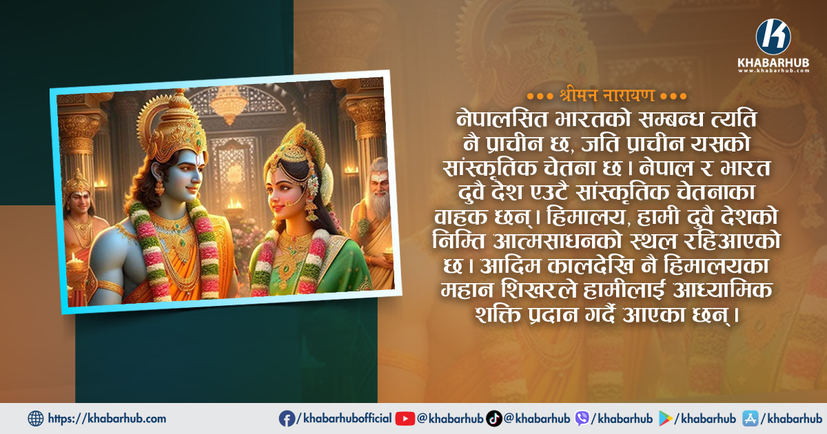 नेपाल र भारतबीच परम्परागत एवं बहु आयामिक सम्बन्ध रहिआएको छ । यी दुई देश बीचको परस्पर सम्बन्धलाई सुदृढ एवं प्रगाढ बनाउनमा सामाजिक एवं सांस्कृतिक सम्बन्धको ठूलो योगदान रहेको छ । यस सम्बन्धको शुभारम्भ त्रेतायुगदेखि भएको हो । भारतको अयोध्याका राजकुमार श्रीराम र नेपाल मिथिलाकी राजकुमारी सीताको शुभ–विवाह भएदेखि नै नेपाल र भारत बीचको सामाजिक एवं […]