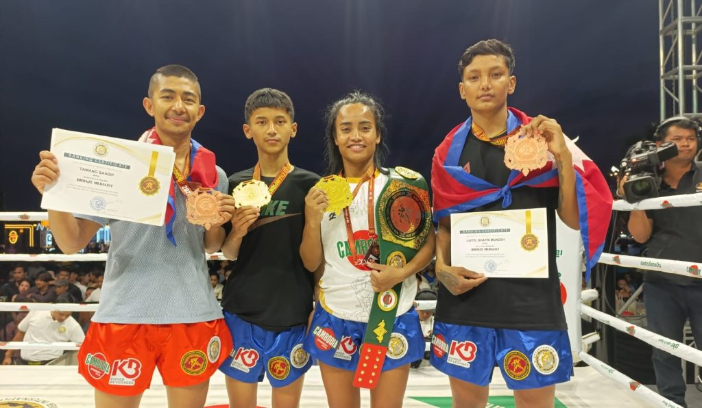 १ फागुन, काठमाडौं । नेपालका सुष्मा चौधरी र पुस्करदेव मल्लले छैटौं कुन खमेर विश्व च्याम्पियनसिपमा स्वर्ण जितेका छन् । कम्बोडियामा भएको प्रतियोगितामा नेपालले २ स्वर्णका अलावा २ कांस्य पनि जित्यो ।