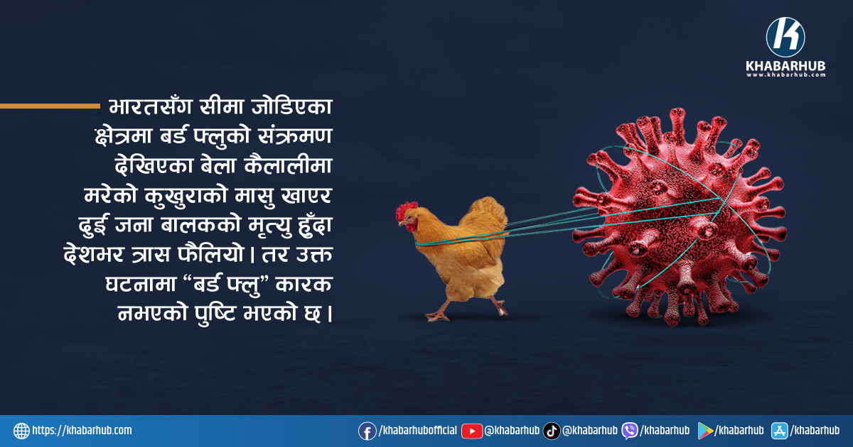 भारतसंग सीमा जोडिएका क्षेत्रमा बर्ड फ्लूको संक्रमण देखिएका बेला कैलालीमा मरेको कुखुराको मासु खाएर २ जना बालकको मृत्यु हुँदा बर्ड फ्लूको संक्रमणले मृत्यु भएको आशंकामा त्रास फैलिएको थियो । तर उक्त घटनामा ‘बर्ड फ्लु’ कारक नभएको पुष्टि भएको छ । पशुपन्छी रोग अनुसन्धान प्रयोगशाला धनगढीमा गरिएको पोस्टमार्टम तथा नमूना परीक्षणमा बर्ड फ्लु ‘नेगेटिभ’ आएको प्रयोगशालाका […]