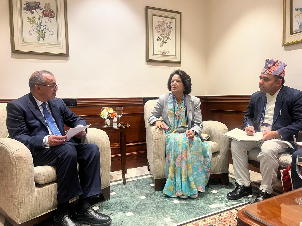 विश्व स्वास्थ्य संगठनका महानिर्देशक डा. टेड्रोसले नेपालको स्वास्थ्य क्षेत्रमा देखिएको उच्च प्राथमिकता र प्रतिबद्धताको प्रशंसा गर्दै सरकारले अघि सारेका सुधार प्रयासहरू सकारात्मक दिशामा रहेको बताउनुभयो। उहाँले नेपालको स्वास्थ्य प्रणालीलाई थप प्रभावकारी, पहुँचयोग्य र गुणस्तरीय बनाउन डब्लुएचओको तर्फबाट निरन्तर प्राविधिक तथा रणनीतिक सहयोग उपलब्ध गराइने आश्वासन दिए।