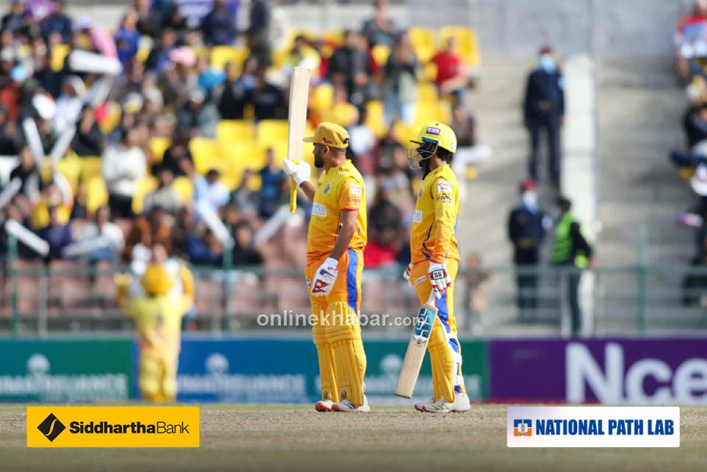 ११ मंसिर, काठमाडौं । विनोद भण्डारीले अर्धशतक बनाएपछि सुदूरपश्चिम रोयल्सले सिद्धार्थ बैंक नेपाल प्रिमियर लिग (एनपीएल) मा बिहीबार लुम्बिनी लायन्सलाई पराजित गर्दै लगातार चौथो जित हात पारेको छ ।