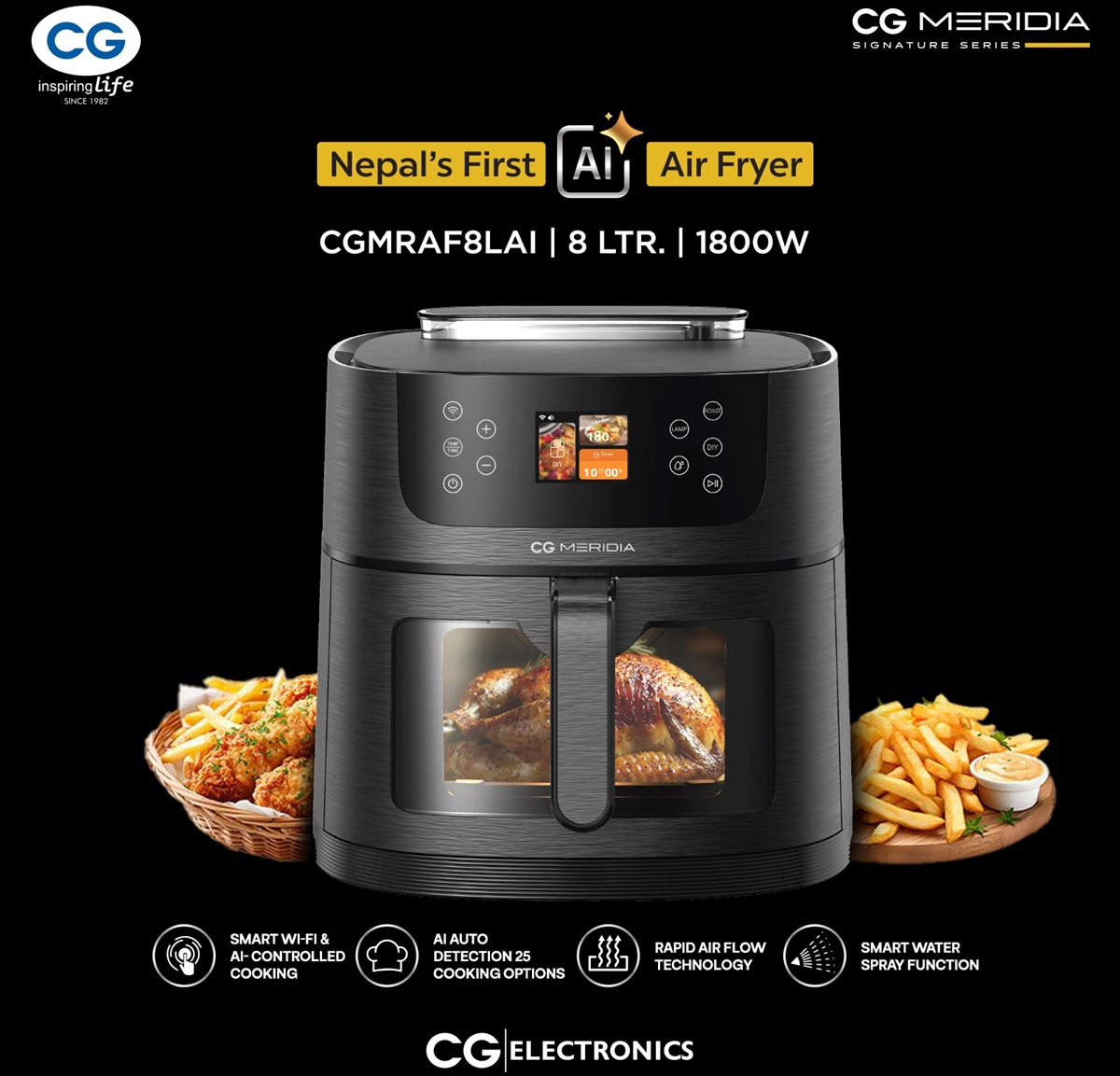 काठमाडौं– सीजीले नेपालकै पहिलो एआई-सञ्चालित एयर फ्रायर औपचारिक रूपमा सार्वजनिक गरेको छ । सीजीएमआरएएफ८एलएआई नेपालको पहिलो एआई एयर फ्रायर हो । यसको पावर १८०० वाट र क्षमता ८ लिटरको छ । कम्पनीका अनुसार यो नेपालमा पहिलो पटक अत्याधुनिक आई-सञ्चालित र इन्टरनेट अफ थिंङ्स (आओटी) प्रविधि संयोजन भएको एयर फ्रायर हो जसमा भित्रै जडान गरिएको इन्टरनल क्यामेरा र स्मार्ट सेन्सरमार्फत […]