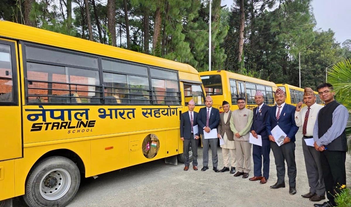 काठमाडौं- नेपालस्थित भारतीय दूतावासले विभिन्न ४८ वटा जिल्लाका ८१ विद्यालयलाई १/१ वटा स्कुल बस वितरण गरेको छ । नेपाल–भारतबीचको दीर्घकालीन विकास साझेदारी र मित्रतालाई सुदृढ बनाउने उद्देश्यले कोशी प्रदेशका बाढी प्रभावित इलाम, झापा र उदयपुरसहित सातै प्रदेशका ४८ जिल्लास्थित शैक्षिक संस्थाहरूलाई ८१ वटा स्कुल बसहरू उपहारस्वरूप प्रदान गरिएको हो। यी बसहरू हुम्ला, मुस्ताङ, संखुवासभा, दार्चुला, […]