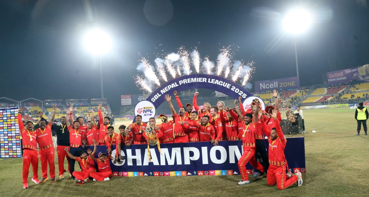काठमाडौँ। नेपाल प्रिमियर लिग (एनपीएल) को दोस्रो संस्करणको विजेता लुम्बिनी लायन्सले पुरस्कारबापत एक करोड १० लाख रुपैयाँ हात पारेको छ। उपविजेता बनेको सुदूरपश्चिम रोयल्स ५१ लाख रुपैयाँको हकदार बन्यो। शनिबार भएको फाइनलमा सुदूरपश्चिमलाई ६ विकेटले पराजित गर्दै लुम्बिनीले उपाधिमाथि कब्जा जमाएको हो। रवाफिलो जितमा लुम्बिनीको सेलिब्रेसन [फोटो फिचर] तेस्रो स्थानमा रहेको विराटनगर किंग्सले २५ लाख […]