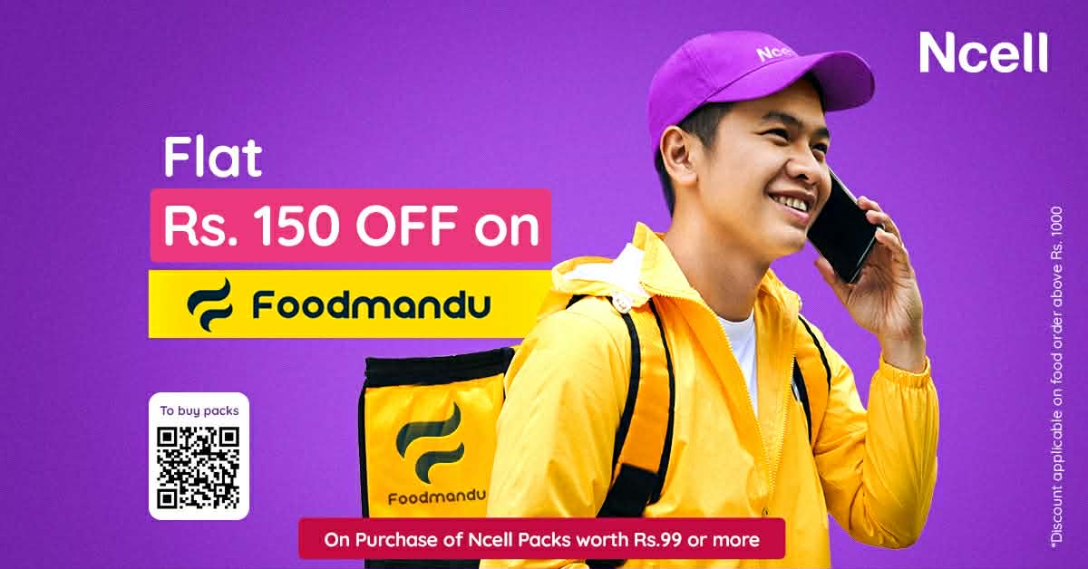 काठमाडौं- एनसेलले फुडमाण्डुसँग साझेदारी गर्दै नयाँ अफर सुरु गरेको छ । जसमा एनसेलका ग्राहक फुडमाण्डुमा गर्ने खानाका परिकारको अर्डरमा १५० रुपैयाँको छुट पाउने छन् । कम्पनीका अनुसार मंगलबारदेखि सञ्चालनमा आएको यो अफरमा ९९ वा सोभन्दा बढी मूल्यका अफरमा समावेश कुनै पनि एनसेल प्याकको खरिदमा ग्राहकहरूले १५० रुपैयाँ छुटको कुपन प्राप्त गर्दछन् । यो कुपन फुडमाण्डुमा १,००० रुपैयाँ वा […]