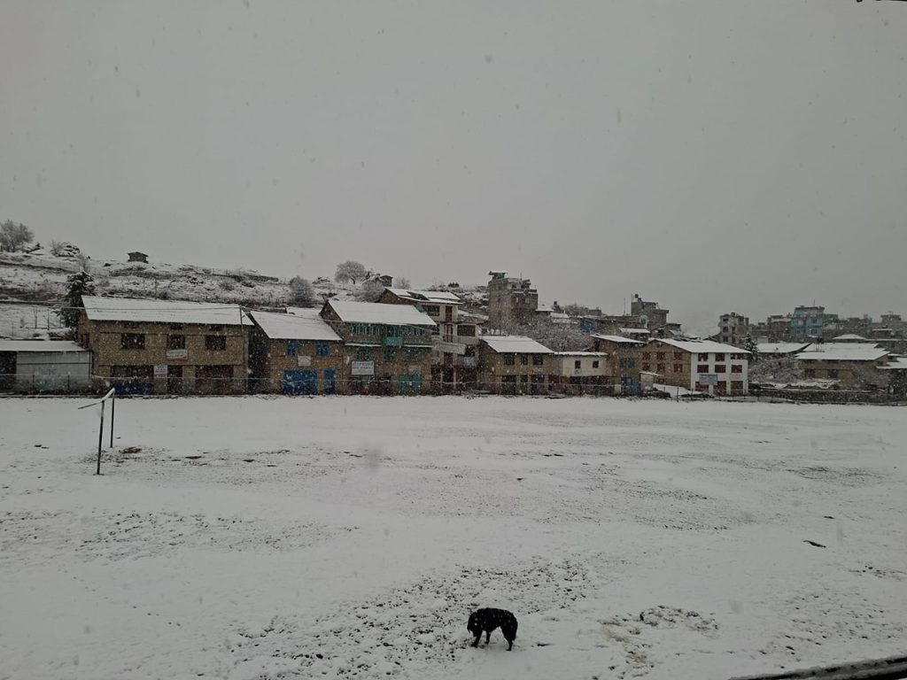 १० माघ, जुम्ला । जुम्लामा हिमपात भएको छ । मध्यरातिदेखि हिमपात भएको हो । हिउँदे सिजन पुस महिनामै पानी परेर हिउँ पर्ने गर्दथ्यो । यसपटकको हिमपात आज माघ १० गते भएको छ ।