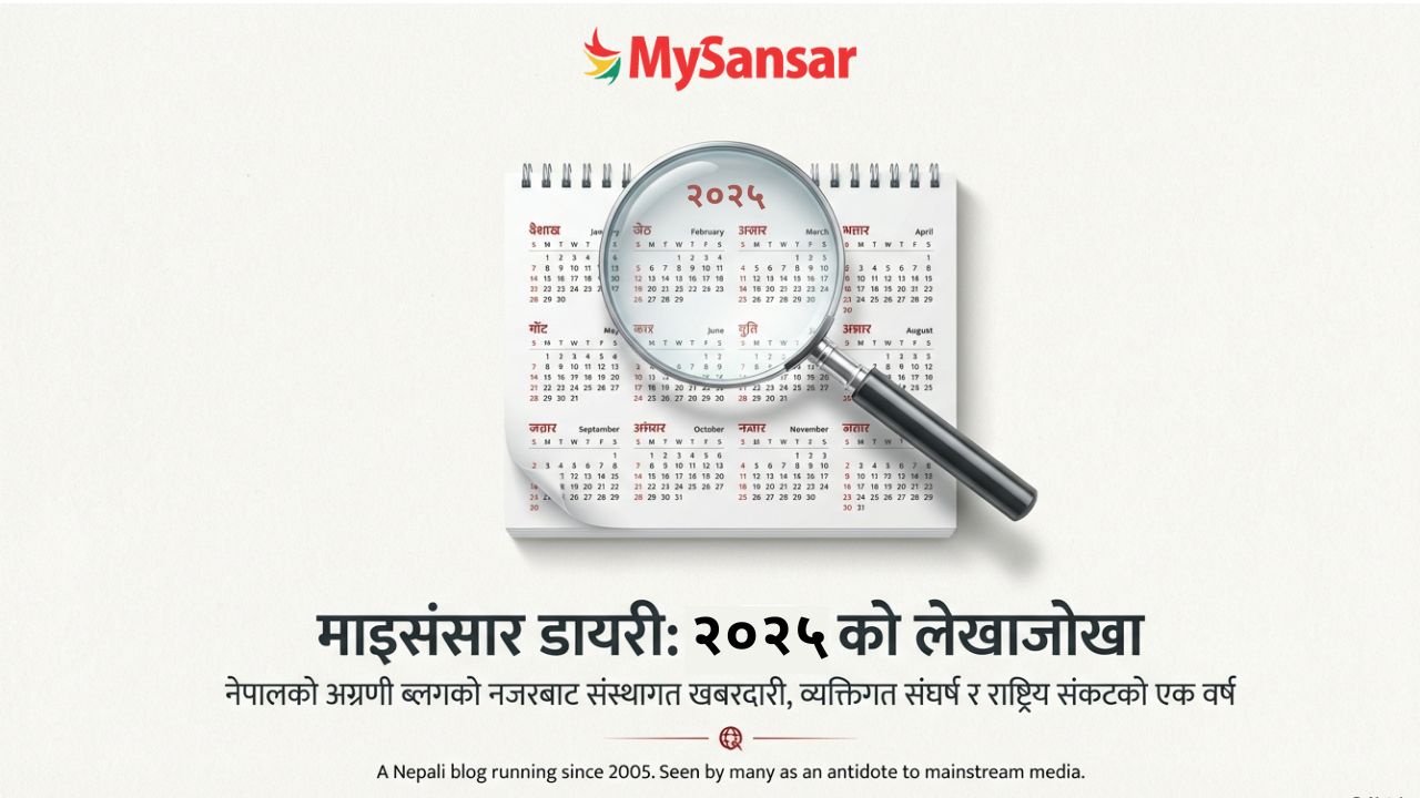 सन् २०२५ आजदेखि सकिएको छ। यो वर्ष देशै जल्यो। व्यक्तिगत रुपमा पनि यो वर्ष मलाई खासै राम्रो भएन। माइसंसारमा त सेप्टेम्बर १७ यता अर्थात् १०५ दिनपछि पहिलो पटक ब्लग लेख्दैछु। किन मेरो हात माइसंसारमा चलेन, त्यसबारे विस्तृत लेख्ने नै छु। आशा छ नयाँ वर्ष २०२६ मा यस्तो हुने छैन। यस पटक भने एआईको सहयोगमा यो