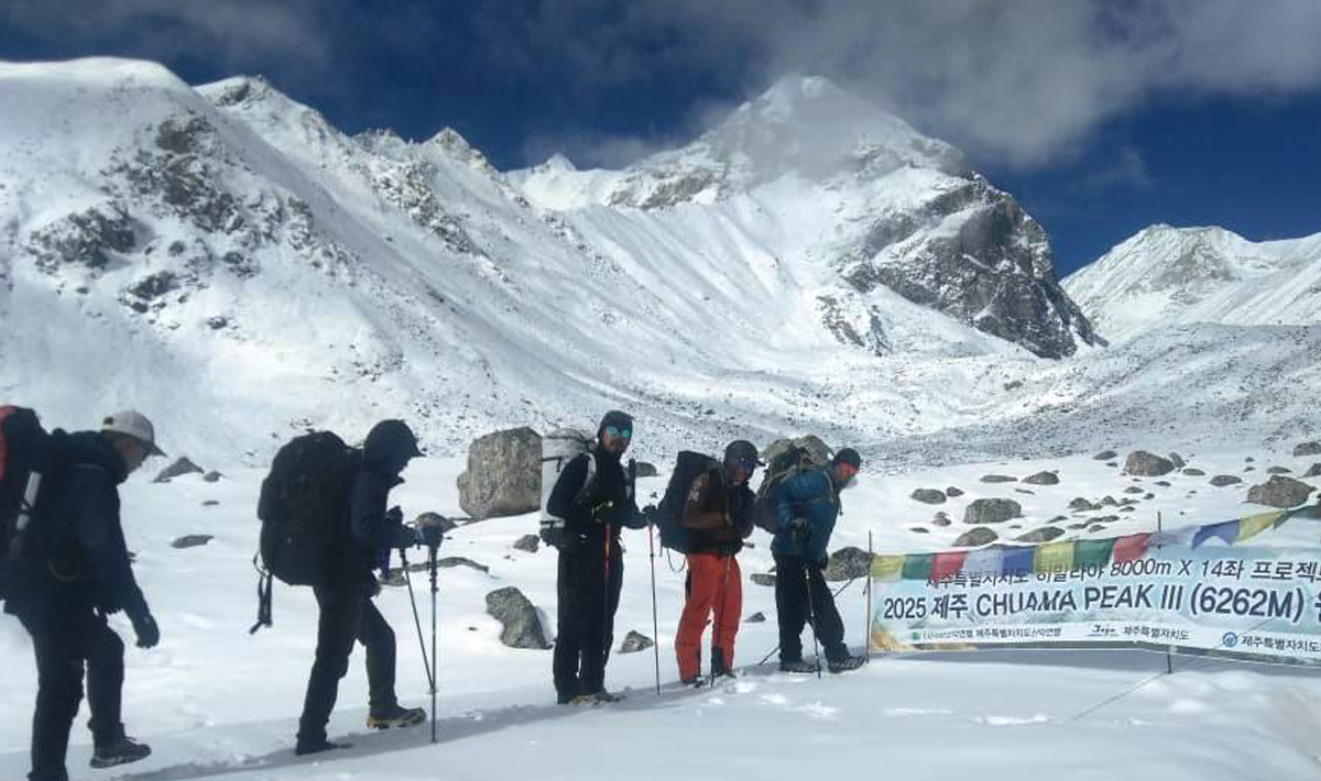 मुस्ताङ- माथिल्लो मुस्ताङस्थित ‘छुआमा’ हिमालको पहिलोपटक पर्वतारोहण भएको छ। दक्षिण कोरियाली तीन विदेशी पर्यटकसहित आठ जनाको आरोहण टोलीले नाभेम्बर २ मा ६२१३ मिटर उचाइमा रहेको ‘छुआमा’ हिमालको सफलतापूर्वक पर्वतारोहण गरेको राष्ट्रिय प्रकृति संरक्षण कोष, अन्नपूर्ण संरक्षण आयोजना (एक्याप) लोमान्थाङले जनाएको छ। यहाँको माथिल्लो मुस्ताङस्थित ‘छुआमा’ हिमाल लोमान्थाङ गाउँपालिका–४ स्थित नाम्डो गाउँबाट माथिको ५४८० मिटर उचाइको […]