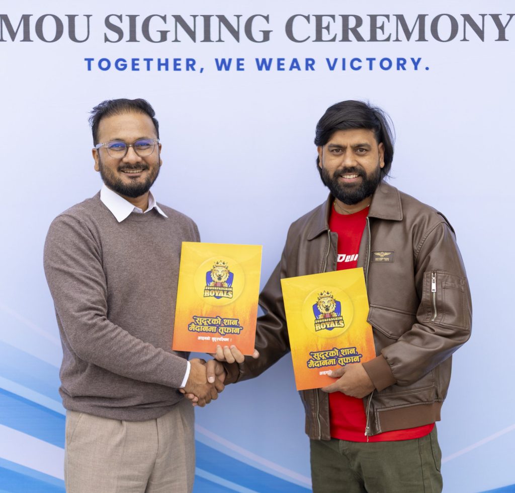 १० कात्तिक, काठमडौँ । नेपाल प्रिमियर लिग (एनपीएल) को फ्रेन्चाइज टोली सुदूरपश्चिम रोयल्सले आधिकारिक एपरेल (पोशाक) पार्टनरको रुपमा डीआरजेसँग सम्झौता गरेको छ ।