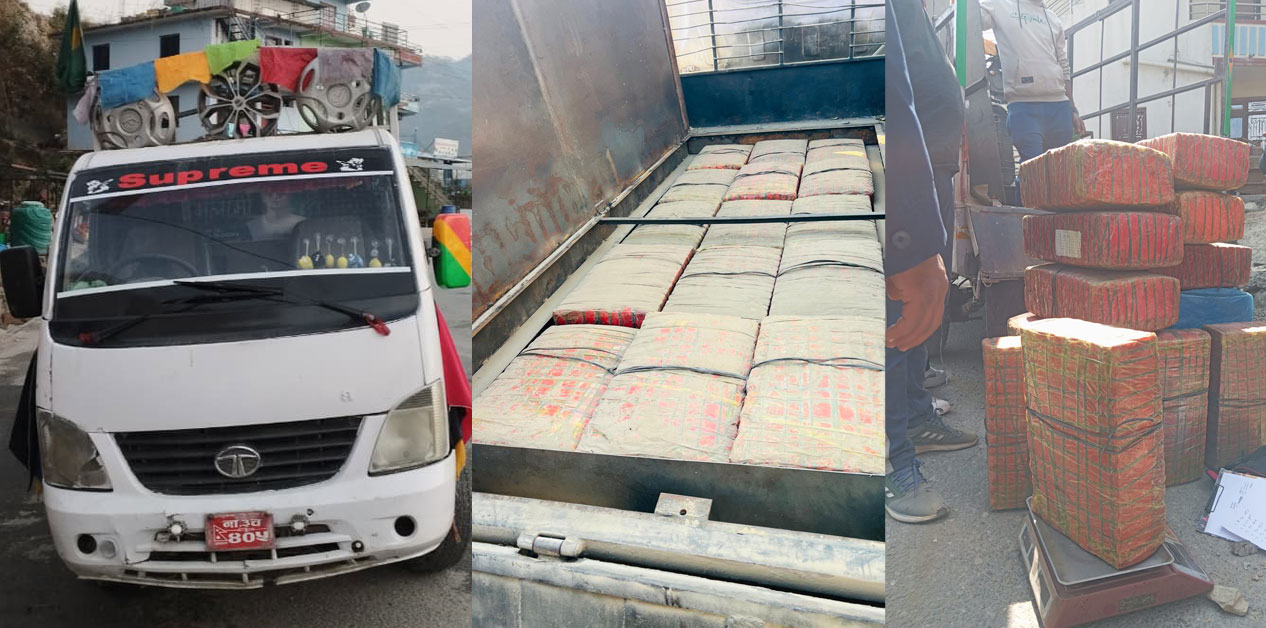 काठमाडौँ। धादिङबाट तरकारीको खाली क्रेट बोकेर हेटौँडा जाँदै गरेको गाडीबाट प्रहरीले गाँजा बरामद गरेको छ। प्रहरीले ललितपुर बागमती गाउँपालिका २‚ बगुवाको जंगल क्षेत्रबाट बुधबार बिहान १५३ किलो गाँजा बरामद गरेको हो। जिल्ला प्रहरी परिसर ललितपुरका प्रवक्ता प्रहरी उपरीक्षक गौतम मिश्रका अनुसार ना.३च ४०५ नम्बरको गाडीबाट गाँजा बरामद गरिएको हो। प्रहरी चौकी भट्टेडाँडाको टोलीले गाडी जाँच […]