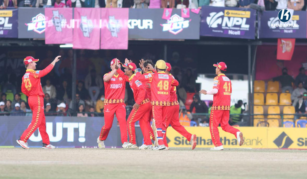 काठमाडौं- नेपाल प्रिमियर लिग एनपीएलको दोस्रो सिजनको पच्चिसौँ खेलमा अहिले जनकपुर बोल्ट्स र लुम्बिनी लायन्सबीच प्रतिस्पर्धा भइरहेको छ । कीर्तिपुरस्थित त्रिवि अन्तर्राष्ट्रिय क्रिकेट रङ्गशालामा जारी खेलमा जनकपुरले टस जितेर पहिले ब्याटिङ गरिरहेको छ । खेलमा जनकपुरले लगातार दुई बलमा दुई विकेट गुमाएको छ । लुम्बिनीका कप्तान रोहित पौडेलले खेलमा लगातार दुई बलमा जनकपुरका दुई ब्याटरलाई […]