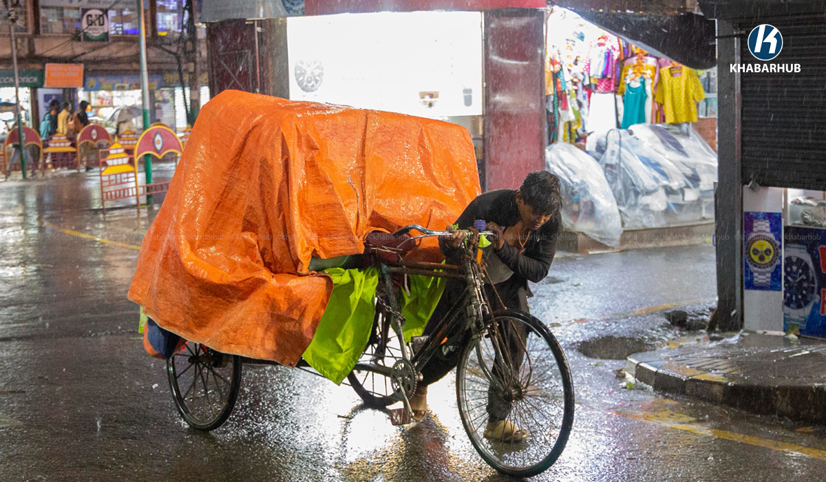 काठमाडौं– काठमाडौं उपत्यकामा सोमबार हावाहुरीसहित वर्षा भएको छ । अचानक मौसम बदलिएपछि उपत्यकाका विभिन्न स्थानमा हावाहुरीसँगै पानी परेको हो । तस्बिर : नेपाल फोटो लाइब्रेरी