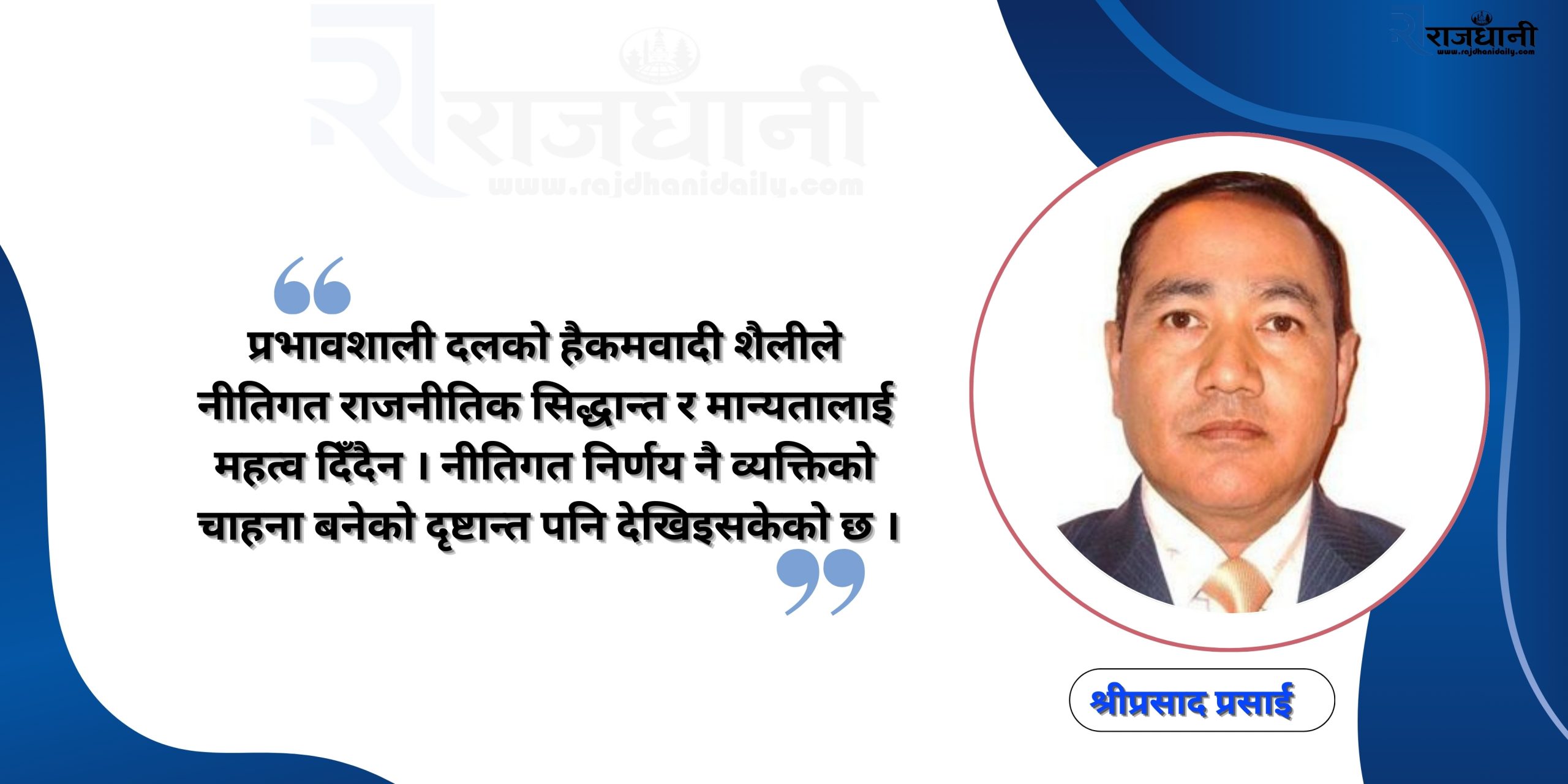 RajdhaniDaily.com | सामान्य शब्दमा भन्नुभर्दा राजनीति ‘नागरिक दृष्टिकोण’ नै हो । यसको उत्पत्ति पनि आमनागरिकको भावना, चाहना र समसामयिक परिवर्तित विचारले नगराएका हुन् । यही -