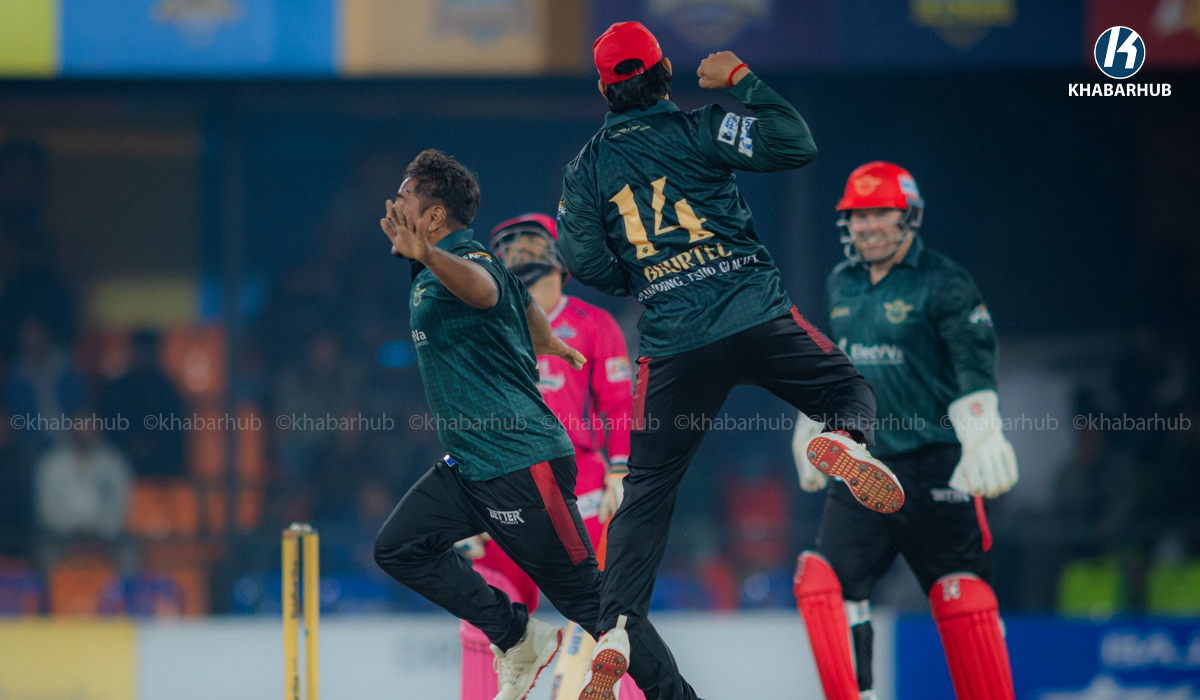 ११ मंसिर, काठमाडौं । ब्याटिङमा सुमित वर्माको अर्धशतक अनि बलिङमा स्पीनर विपिन खत्री चम्किएपछि पोखरा एभेन्जर्सले सिद्धार्थ बैंक नेपाल प्रिमियर लिग (एनपीएल) दोस्रो संस्करणमा पहिलो जित हात पारेको छ ।