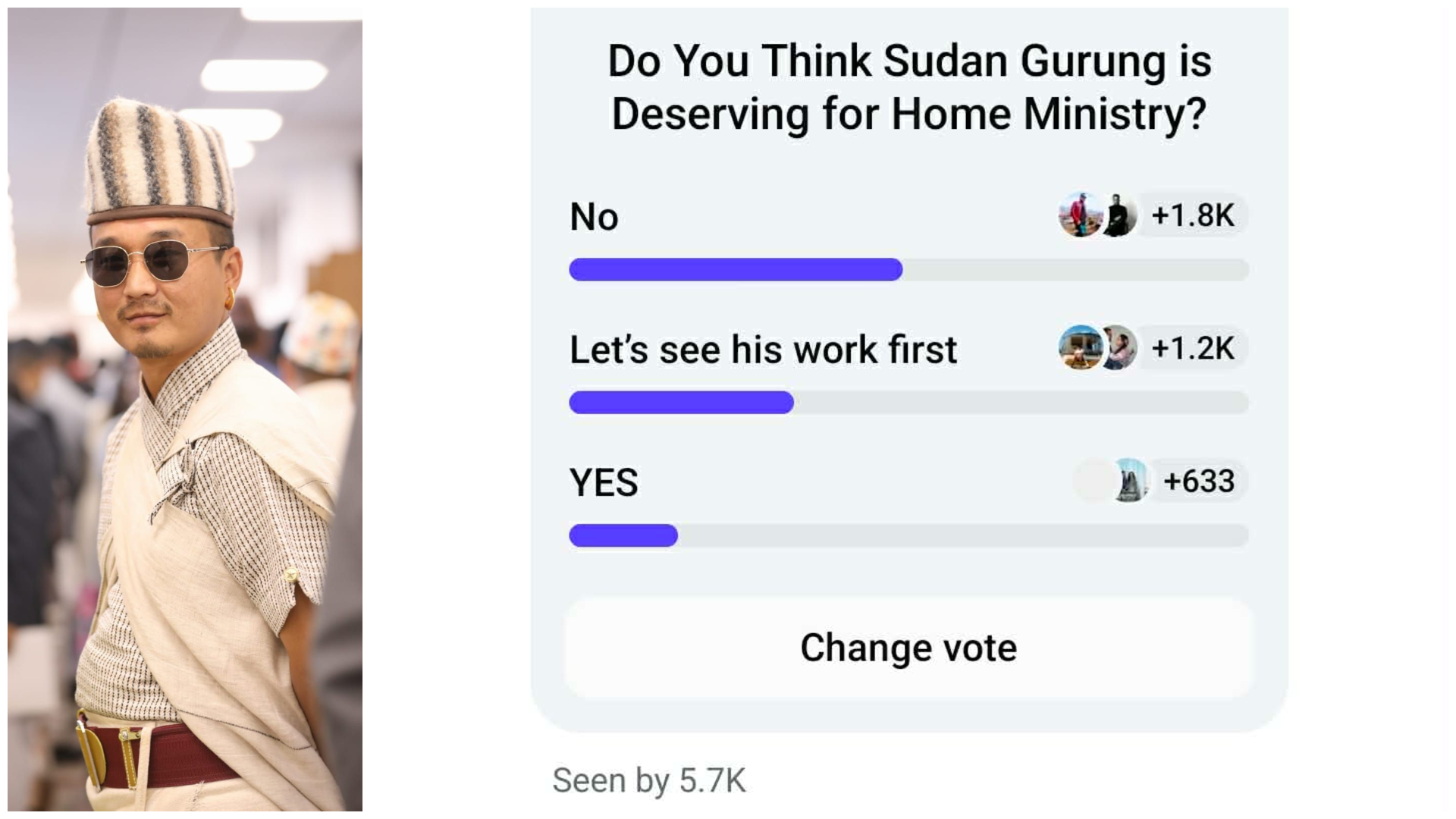 काठमाडौं– रुटिन अफ नेपाल बन्दका सञ्चालक भिक्टर पौडेलले सुधन गुरुङ गृहमन्त्री बन्न लायक छन् भन्ने पोल सुरु गरेका छन् । पौडेलले फेसबुक म्यासेन्जर भित्र ‘डु यु थिंक सुधन गुरुङ इज डिजर्भिङ फर होम मिनिस्ट्रिी’ भन्ने पोल चलाएका हुन् । पोडेलले चलाएको पोलमा अधिकांशले लायक छैनन् भन्ने जवाफ दिएका छन् भने केहीले उसको पहिला काम हेर्नुपर्छ […]