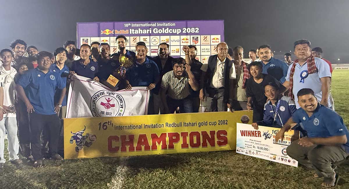 सुनसरी – सोह्रौँ संस्करणको अन्तरराष्ट्रिय आमन्त्रण रेडबुल इटहरी गोल्डकप फुटबल प्रतियोगिताको उपाधि युवा समाज गछिया मोरङले जितेको छ । सोमबार इटहरीस्थित रङ्गशालामा सम्पन्न फाइनल खेलमा प्लानिङ ब्वाइज युनाइटेड काठमाडौँलाई १–० गोलअन्तरले पराजित गर्दै युवा समाज गछियाले उपाधि हात पारेको हो । खेलको ८७औँ मिनेटमा युवा समाजका खेलाडी दोर्जे तामाङले गोल गर्दै टोलीलाई अग्रता दिलाएका थिए […]