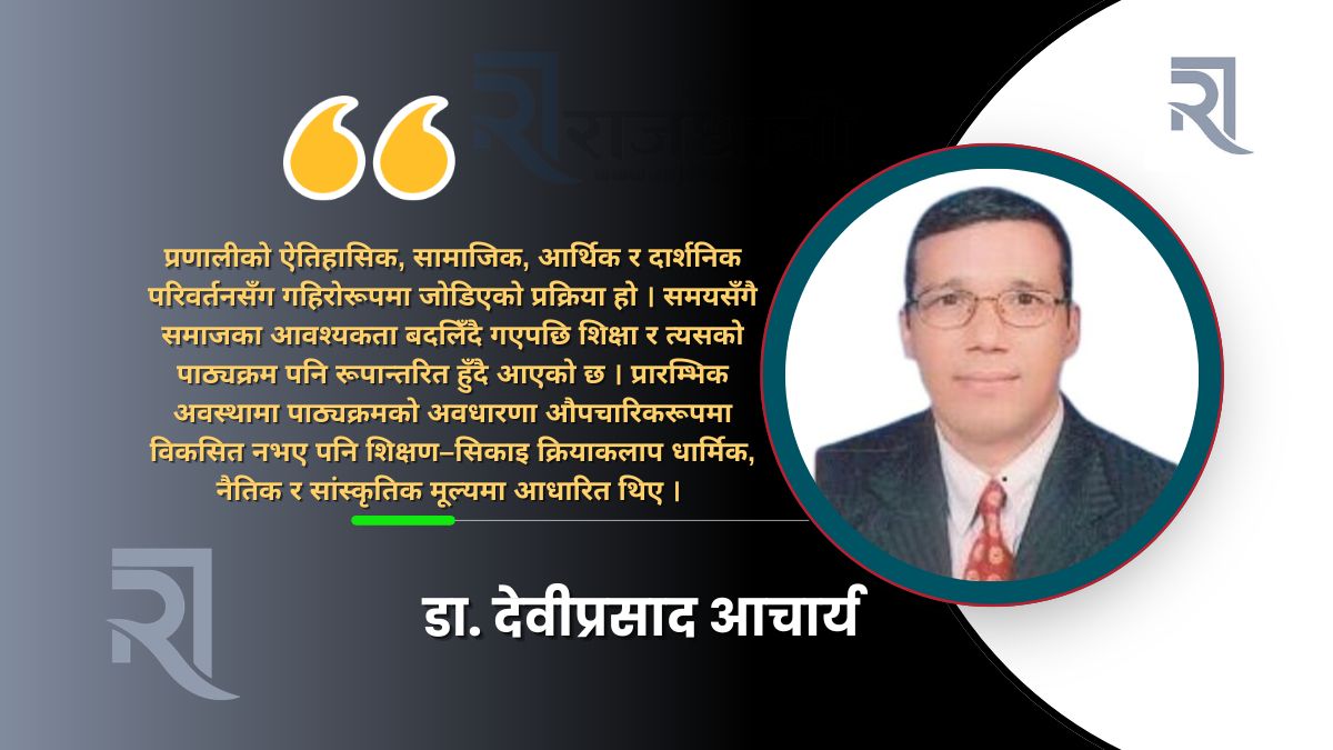 RajdhaniDaily.com | पाठ्यक्रम एउटा व्यवस्थित शैक्षिक योजना हो, जसमा सिकाई उद्देश्य, शिक्षण विधि, शिक्षण सामग्री, अनुभव तथा मूल्यांकन पद्दतिजस्ता तत्व समावेश गरिएका हुन्छन् । -